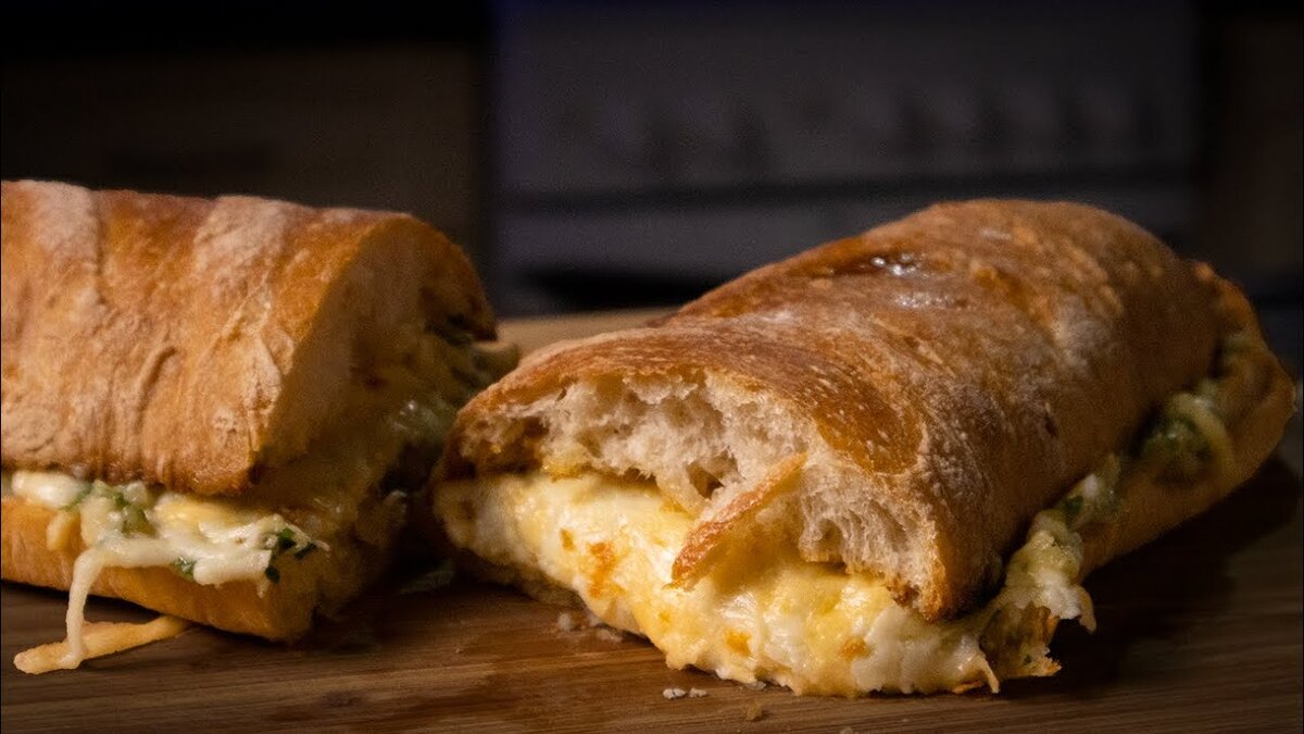 Люблю всякого рода бутерброды и сэндвичи, поэтому достаточно часто экспериментирую в этом плане. Так в и этот раз - попался мне на глаза этот рецепт и конечно я не смог пройти мимо и не утащить его к себе:) Рецепт очень простой, но невероятно вкусный, на мой вкус любителя чеснока. Если также любите чеснок - повторяйте смело! Ну а основной плюс - что эту намазку (масло с чесноком) можно заморозить и потом по желанию быстро готовить такие бутерброды. Что нам понадобится: Хлеб - 1 бух. любой, чиабата, багет - без разницы Чеснок - 3 гол. Лук - 1 гол. Сыр твёрдый - 100 гр., любой Масло сливочное - 50 гр. Масло оливковое - 2-3 ст.л. Петрушка - пару веточек Соль, свежемолотый черный перец - по вкусу. У головок чеснока срезаем верхушку и вместе с очищеной луковицей отправляем в фольгу, слегка взбрызгиваем оливычем, заворачиваем и в духовку на 40 минут при температуре около 180 градусов, чтобы чеснок и лук стали мягкими. В глубокую мисочку выкладываем мягкое сливочное масло, выдавливаем печеный
