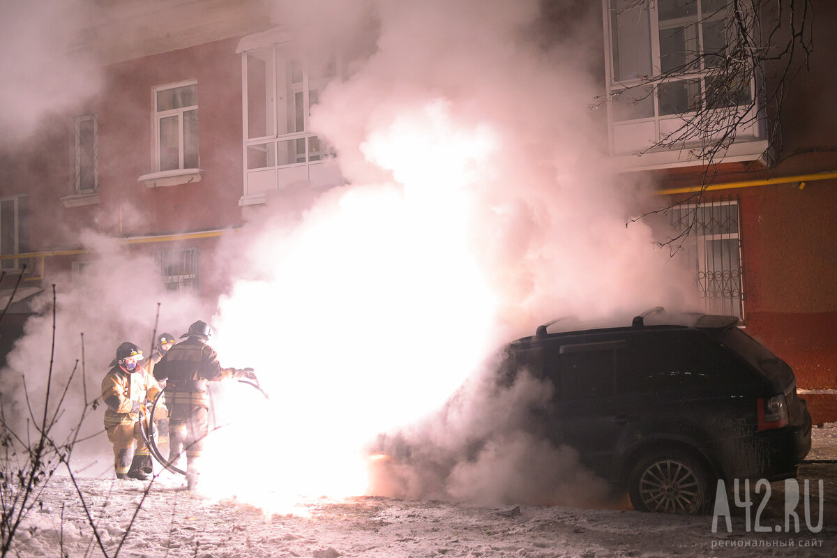 В Кемерове загоревшийся ночью автомобиль поджёг неизвестный мужчина: инцидент попал на видео
