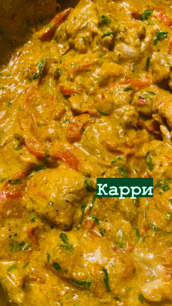 Традиционный рецепт предполагает качественные и разнообразные пряности,но мы живем в России и если мы что-то не найдем,то можно не бояться готовить без этого ингредиента.Но я сторонник традиций и поэтому делюсь тем,как готовлю курицу карри я. P.S.-рецептом поделился один шеф из Индии. Нам понадобиться: •Лук 200г •Чеснок/Имбирь по 15г •Курица 400г •Томат 250г •Болгарский перец 200г •Карри столовая ложка •Гарам масала столовая ложка •Сушеный базилик чайная ложка •Чили по вкусу(но осторожнее,самая острая часть в начале перчика) •Кинза 20г •Греческий йогурт 200г Начинаем готовить: 1)Немного прогреваем специи для большего раскрытия вкуса и аромата(кардамон,лавровый лист,черный перец,палочку корицы) 2)Начинаем с обжарки лука 3)Через минуту добавляем тертый имбирь и чеснок 1:1 4)Добавляем курицу и жарим до красивой корочки 5)Обжариваем смесь специй-гарам масала(ее можно купить или сделать самому) 6)Постепенно вводим и обжариваем болгарский перец,томаты,Чили перец(для тех кто любит поострее🌶
