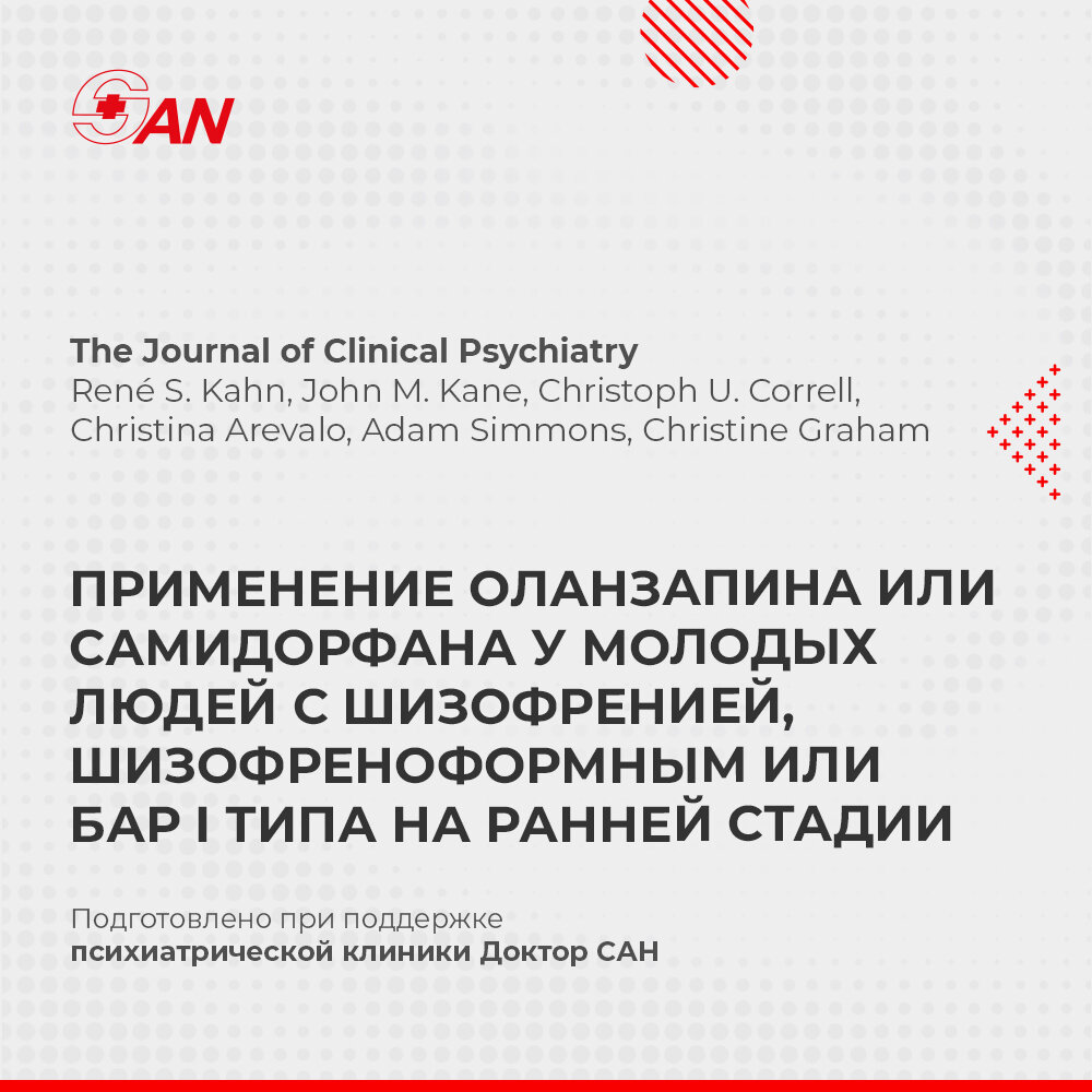 Пациенты с шизофренией на ранней стадии или биполярным расстройством I типа подвержены высокому риску увеличения веса, связанного с приемом антипсихотиков. В 12-недельном рандомизированном двойном слепом исследовании, оценивалось влияние комбинации оланзапина и самидорфана (OLZ/SAM) на вес по сравнению с оланзапином на ранней стадии заболевания. Процентное изменение массы тела было значимо ниже при применении OLZ/SAM по сравнению с оланзапином. Хотя у меньшего числа пациентов, получавших OLZ/SAM, наблюдалось увеличение массы тела ≥ 10%, разница не была статистически значимой по сравнению с оланзапином. Доля пациентов с увеличением веса ≥ 7% (33,1% против 44,8%) и изменением окружности талии (2,99 против 3,90 см) в пользу комбинации OLZ/SAM. OLZ/SAM и оланзапин имели схожие профили безопасности. Подробнее о лечении шизофрении: https://doctorsan.ru/lechenie-shizofrenii