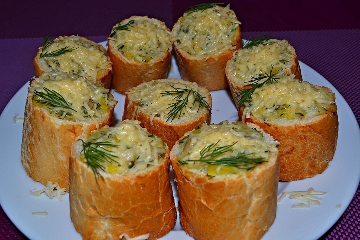 Багет 1 шт, колбаса вареная 100 гр, брынза 100 гр, перец болгарский 1 шт, яйцо 1 шт, помидор 1 шт, зелень. Багет нарезать на кусочки и вынуть мякоть. Начинка: нарезать небольшими кусочками колбасу, брынзу, перец и помидор. Вбить туда яйцо и перемешать. Заполнить начинкой подготовленные кусочки багета внутри. Верх присыпать тёртым сыром и запечь в духовке . Получаются хрустящие стаканчики!