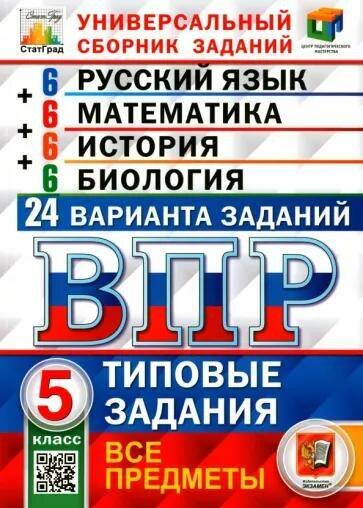 Книга содержит 24 варианта типовых заданий Всероссийской проверочной работы (ВПР) за курс 5-го класса по четырем предметам (по 6 вариантов).