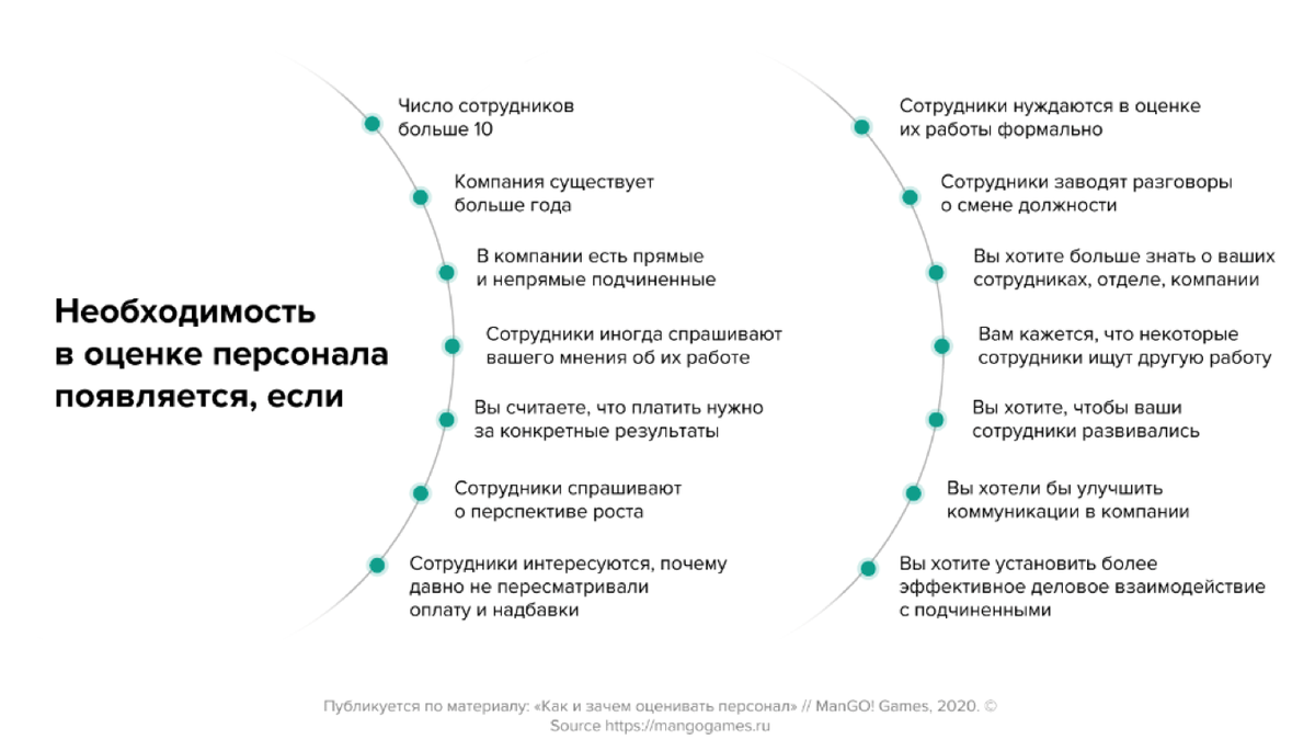 Решение о необходимости проведения оценки персонала каждый руководитель компании или подразделения принимает самостоятельно. Кто-то использует эти инструменты на постоянной основе, и оценка является неотъемлемой частью корпоративной культуры, кто-то обращается к ней ситуативно.
