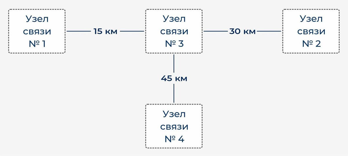 → Три канала по 10G каждый между узлами связи №1 и №2 через промежуточный УС №3.