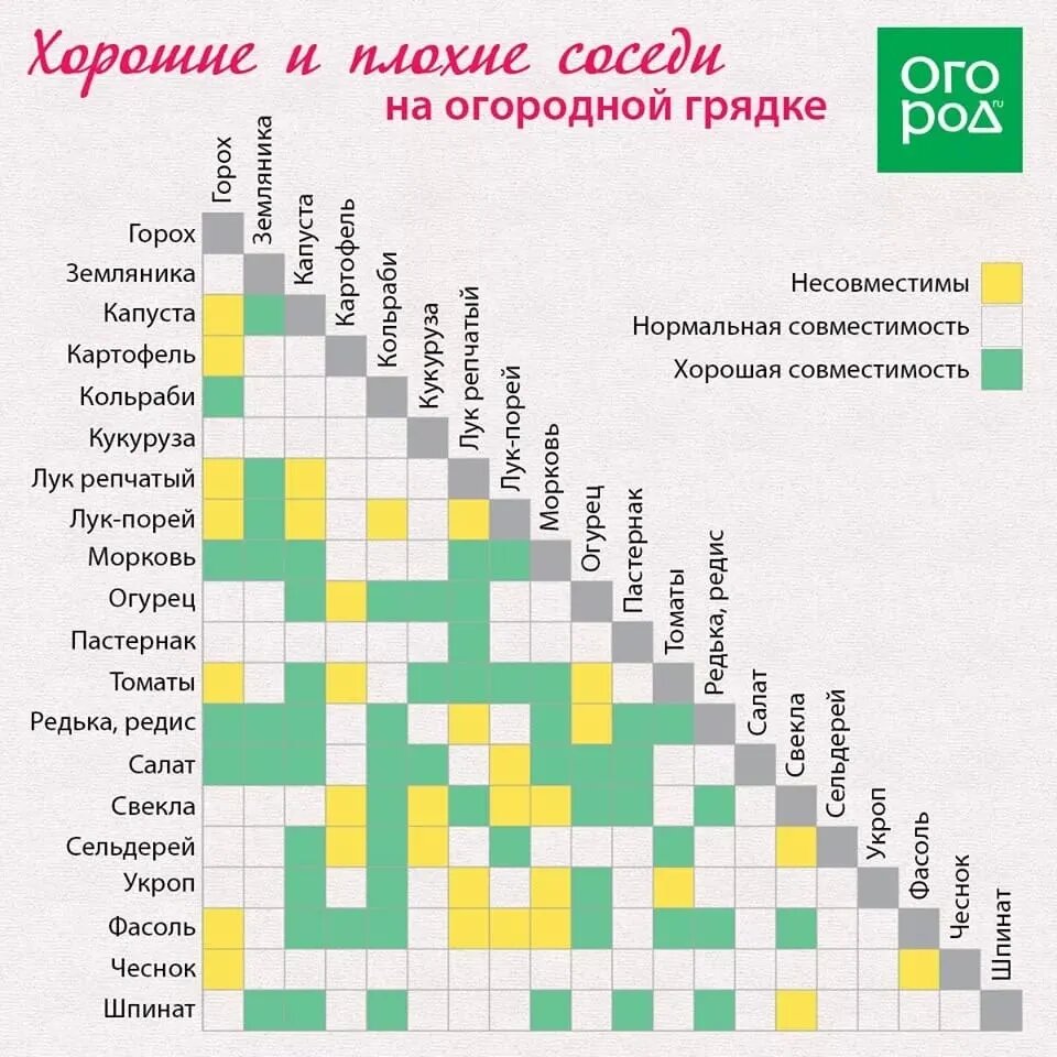 Всем привет и отличного дня! А вы уже составили план посадок? Т.к. мы из года в год, как правило, сажаем на одних и тех же местах, во-первых, земля обедняется, во-вторых, нужно следить за севооборотом, т.е. чередованием культур на грядках. Почему так? Почему не стоит на одних и тех же грядках каждый год сажать одно и то же? Всё дело в аллелопатии - это когда каждое растение выделяет свои особые вещества в почву, формирует свой особый симбиоз с микроорганизмами. Для одних растений эти вещества подойдут и будут полезными, для других - вредными или даже ядовитыми. К тому же, каждая культура в большем объёме забирает из почвы какие-то вещества, а какие-то ей нужны меньше. И если мы сажаем культуры, которые забирают одни и те же вещества, им будет голодно и грустно. Особенно если корни у них на одной глубине. Поэтому смотрим обязательно таблицы совместимости! Паслёновые не сажаем после паслёновых, крестоцветные - после крестоцветных! В смешанных посадках выбираем культуры, которые помогают