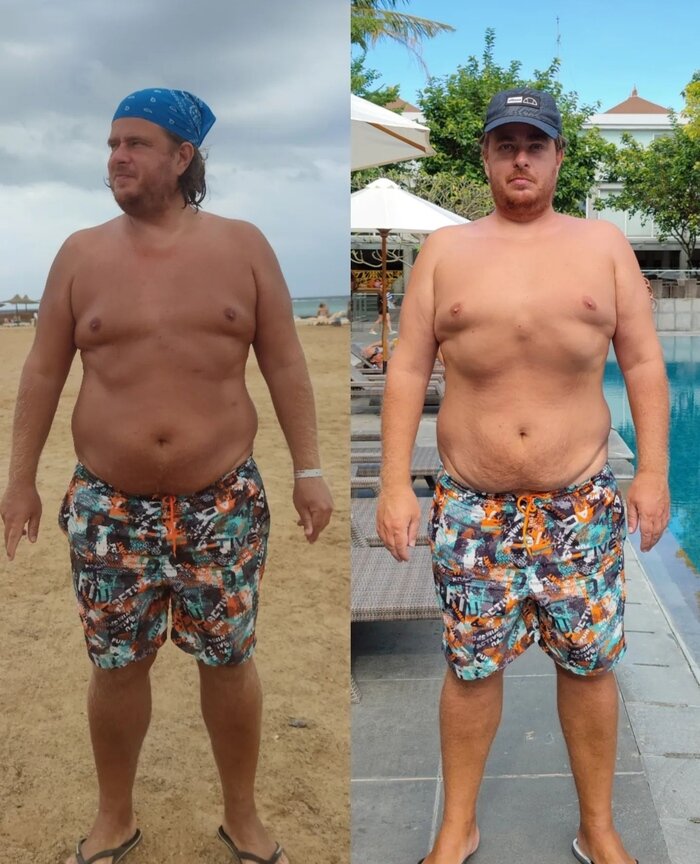 Фото на 100-й день и фото до начала похудения. Привет всем. Прошли очередные 10 дней и сегодня было контрольное взвешивание. Весы показали 122, 3кг, что на 700 грамм меньше предыдущего показателя. Меня до сих пор это удивляет, т.к мой рацион питания оставляет желать лучшего.. В эти 10 дней я как минимум 3 раза ел Сувлаки и запивал колой, один раз обедал в kfc, побывала во мне и картошка фри с курицей в кляре (помимо того что я ел в Kfc) я один раз в день выкладываю все что я ел в течении предыдущего дня у себя в Инстаграме. https://instagram.com/bob100kg?igshid=ZDdkNTZiNTM= И сегодня залил первое видео с контрольным взвешиванием и тем что я ел за предыдущие 10 дней в ютюб. https://youtube.com/@bob100kg Физической активности тоже было не много (я про пешие прогулки) за 10 дней я прошел 72, 58 км. Согласно показаниям моего телефона, хотя это безусловно больше чем я ходил до того как начал худеть. Другой Физической активности не было от слова совсем... Как я в итоге худею для меня остаетс