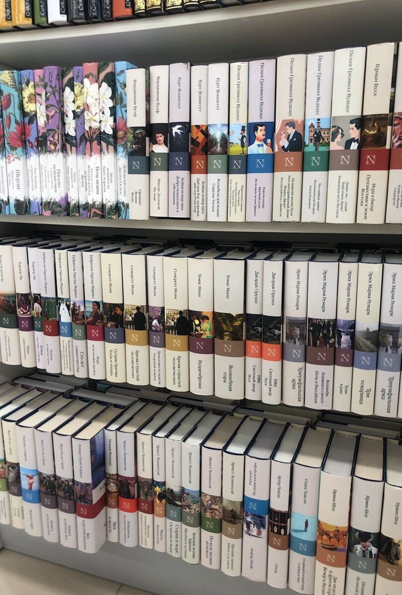 Этот способ тоже является популярным, так как он позволяет создавать определенный ритм и гармонию на полке или в книжном шкафу. Книги расставляются по высоте и ширине. Полки выглядят эстетично, ряды составляются ровно. Такая расстановка вам подойдет, если у вас не так много книг и вам нравятся ровные и четкие линии. Также вы можете изначально собирать книги одного размера, чтобы они идеально вписывались в ваш шкаф. Например, большое количество произведений есть в моей любимой серии «Эксклюзивная классика». Есть возможность выбрать твердую или мягкую обложку. Книги одного размера и в одном цвете. Но, к сожалению, далеко не все жанры вы здесь можете собрать, особенно если это детективы, фантастика и т.п.