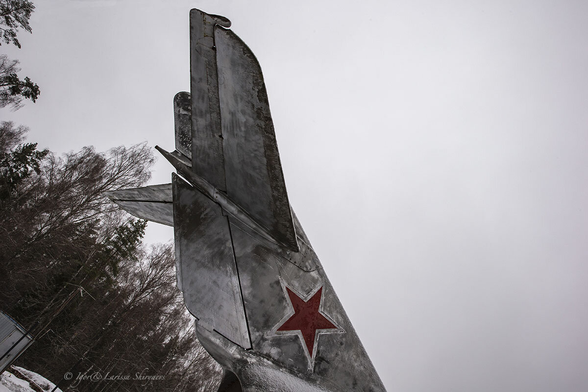 И вот там рядом с храмом на постаменте стоит МиГ-15, что исторически более достоверно, чем тот МиГ-29, который рядом с пустым бетонным основанием у мемориала. На МиГ-15 написан тот самый бортовой номер 18…