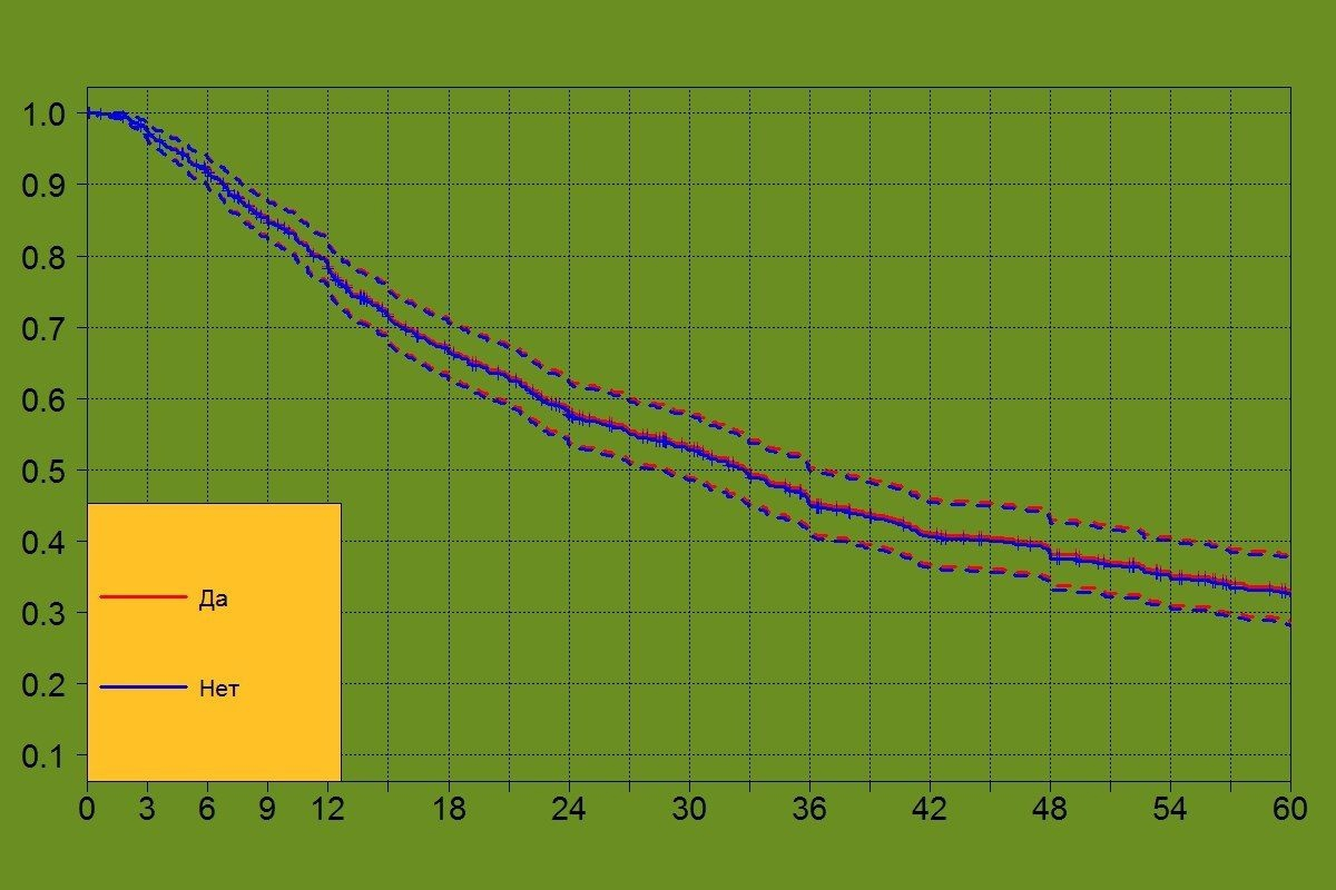 Результат очевиден - наличие детей НИКАК не влияет на удержание, средние сроки мужчина старше 35 лет с детьми и без детей фактически идентичны Это диаграмма дожития - по оси X - срок работы в компании в месяцах, по оси Y - вероятность оставаться работать. Чем больше работаешь, тем ниже вероятность