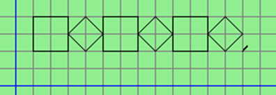 Тут необходимо учесть, что определенный код у нас уже есть с прошлого раза. Так что по сути нужно просто дорисовать квадрат и немного изменить размеры ромба. С первым прям легко. Просто меняем параметры, передаваемые функции Но и с квадратом не сложно. Пишем функцию, поразительно похожую на ромб. Помним, что в функции "сместиться на вектор" мы задаем не координаты, а смещение относительно предыдущих координат. Т.е. переходя из точки 1 в точку 2, мы не меняем значение по координате х, поэтому в функцию идет 0. Самое главное в этой части - не запутаться со смещениями после прорисовки квадрата и ромба. квадрат(2,2)