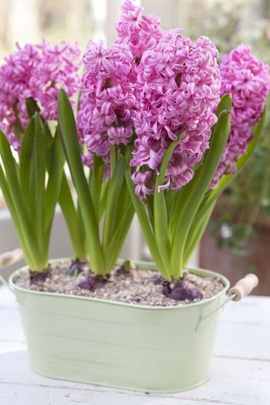 После того как гиацинт отцвел, следует обрезать цветонос (достаточно оставить 10-15 см). Листья оставляем. 🌸Теперь нужно постепенно сокращать полив. Поливают отцветший гиацинт только по мере подсыхания земли. 🌸Постепенно листья будут желтеть, и примерно к середине мая полив нужно совсем прекратить и ждать, пока листья совсем засохнут. 🌸Листья засохли – обрезаем их, а луковицы вытаскиваем. Нужно максимально аккуратно извлечь луковицу из горшка, очистить от почвы, обрезать сухие листья. 🌸Далее необходимо немного подсушить луковицу в темном, теплом, вентилируемом помещении при температуре от + 18 до +22 градусов. И хранить в таких условиях до осенней посадки. Ставьте 👍, если было полезно