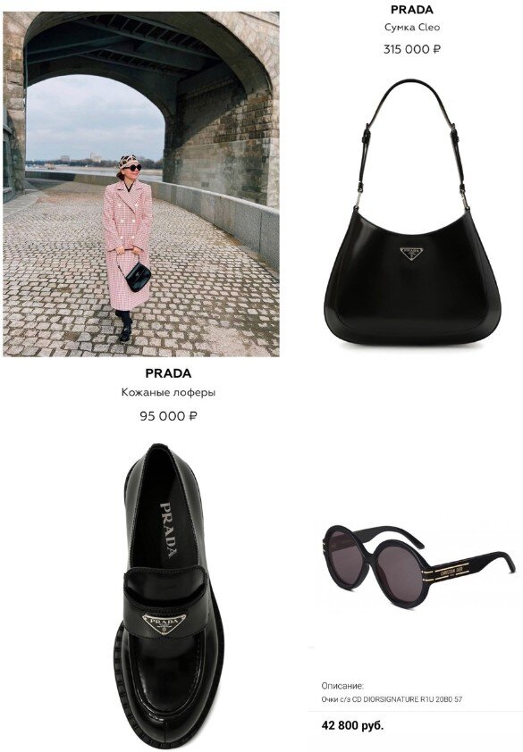 Продолжаю ставшую (не представляю с чего вдруг) ежегодной традицию – приветствую теплую погоду очередным луком супруги Петросяна. В этот раз так: сумка Prada Cleo за 315 000₽, лоферы тоже Prada за 95 000₽, очки Dior за 42 800₽, вязаная шапка российского бренда Svyazat за 5 000₽. А вот пальто вычислить не удалось, может, вы поможете)