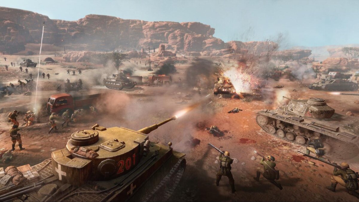 Меньше всего проблем было в мультиплеере, где я не встретил ни одного бага за четыре матча. В игре доступны восемь карт и четыре режима: 1x1, 2x2, 3х3 и 4х4. Фракций также четыре: США, Вермахт, Немецкий Африканский корпус и Великобритания. Американцы обладают самым гибким составом войск, Вермахт полагается на тяжелую технику и оборонительные бои, британцы выглядят самой сбалансированной фракцией, а Африканский корпус – самый быстрый и агрессивный.