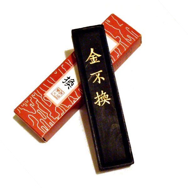 Третья по счету, но не по важности драгоценность просвещенного человека – тушь – брусочки насыщено черного цвета. Наносимая на бумагу тушь, застывает, представляя нашему взору мысли художника. От качества туши зависит выразительность работы, поэтому и к выбору её подходят очень тщательно. Тушь для китайской живописи и каллиграфии это не жидкая тушь в небольших баночках, к которой привыкли мы, она твердая и производится в брусочках. Изначально тушь для традиционной китайской живописи изготавливали из сосны. Позже к туши стали добавлять желатин и мускус. Готовой смеси придавали продолговатую прямоугольную или круглую форму. Такие брусочки имели приятный запах. Так готовят сажу с древних времен. Для этого под специальными чашами сжигали древесину сосны. Важно было добиться, чтобы в результате получалось как можно больше сажи. Один мастер может одновременно управиться с десятью чашами. Потом варят желатин из костей и кожи животных. Смешивают желатин с сажей, что довольно не просто. Для рав
