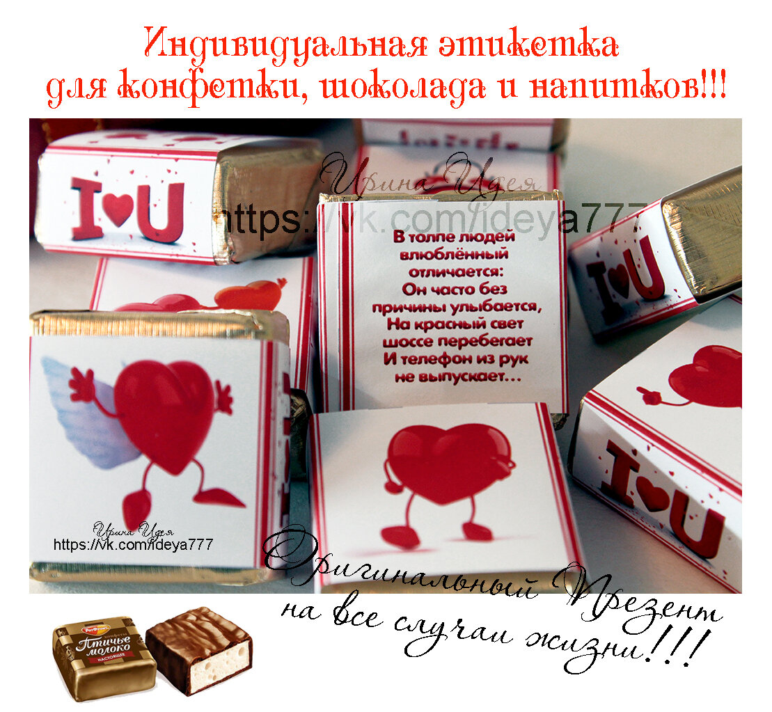 Индивидуальная этикетка на конфеты, шоколад и напитки по вашим размерам.