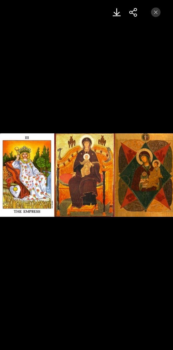 Мать РодИна 3 карта таро – Императрица – Творчество, рост, плодородие, природа, земная мать. Здесь евро-евре подход победил при создании карт Таро и Императрица оказалась выше Императора. Ев-реи – женская линия. Соответствует иконе якобы Неопалимой Богородице. Правильно Икона называется – Мать Родина – Род Иня – Благо Родица и Благо Разрушительница. Царица как жена Царя, Губернаторша, как жена Губернатора… и так далее… пиратша, каперша. Изображается, как в крепости звезде – Родина в Спасе, так и без нее. Помним, что спасом называется полярная звезда и крепость звезда. На червоной накидки Родины изображаются мандалы.