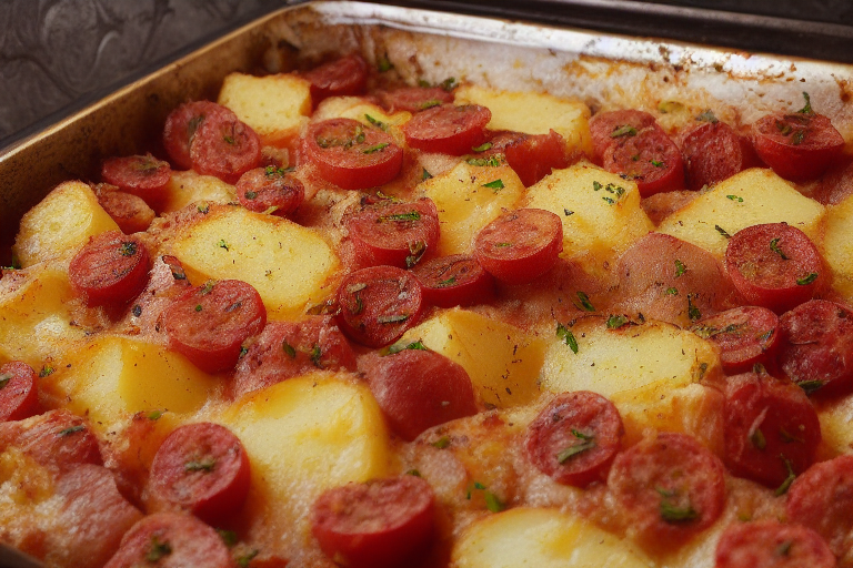 Картошка, запечённая с сосисками, помидорами и сыром: Отличный выбор для сытного обеда