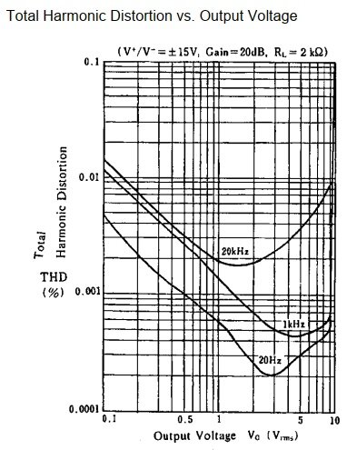 Хотя по характеристикам, данным производителем, Кг = 0,008 % при Ку = 20 дБ и выходном сигнале частотой 1 кГц, размахом 2 В на нагрузке 2 кОм с параллельной емкостью 100 пФ.