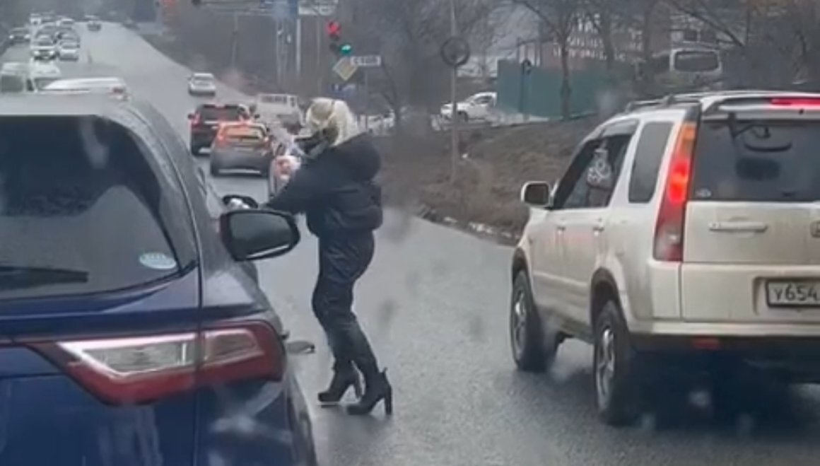 Блондинка с огромным тесаком напала на автомобиль во Владивостоке — выяснились причины