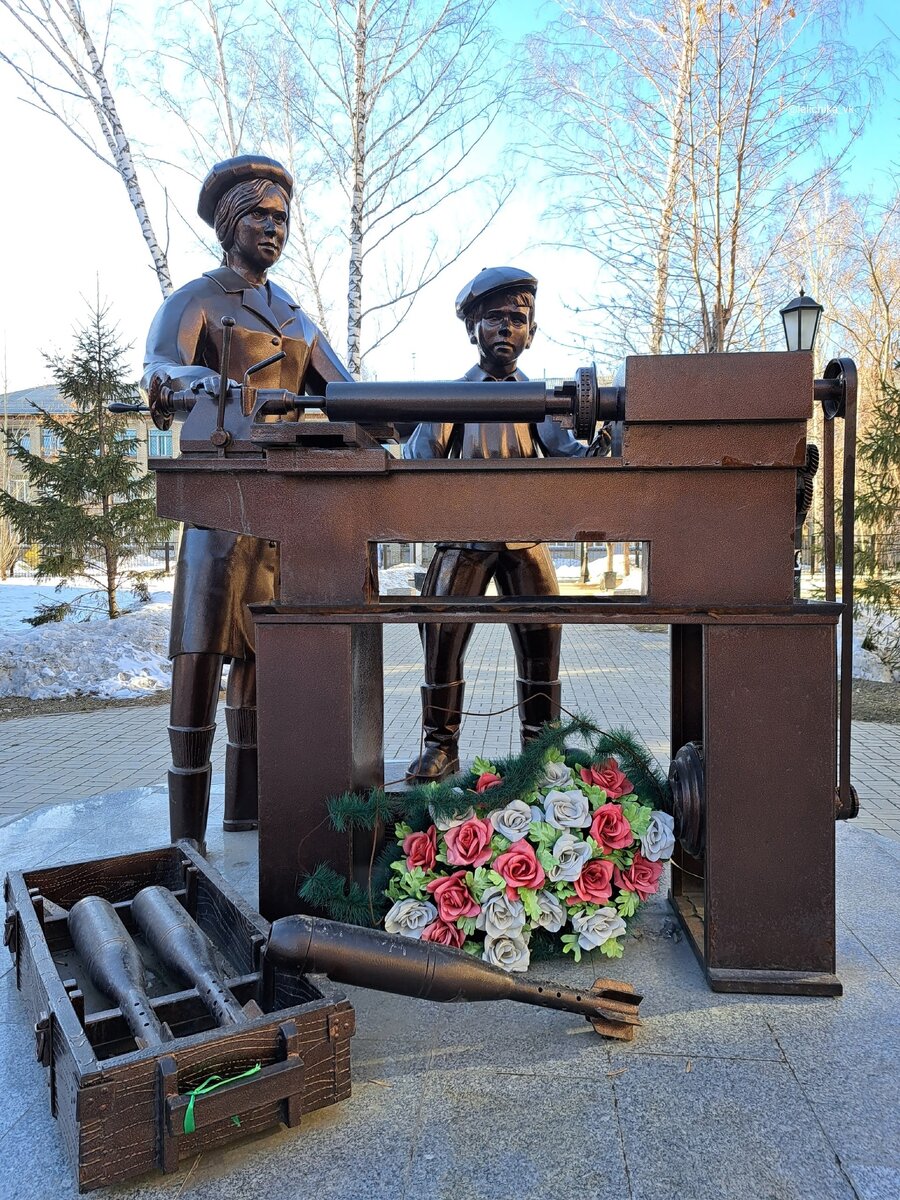 Один из самых трогательных памятников в Новосибирске открыли в преддверии 70 – летия Победы на проспекте Дзержинского. Идея создания памятника «Детям — труженикам тыла» принадлежала общественникам. Ведь именно женщины и дети в тяжелые военные годы совершили трудовой подвиг, заменив в оборонных цехах ушедших на фронт мужчин. Идею поддержали и 5 мая 2015 года состоялось торжественное открытие памятника. На мраморном постаменте молодая женщина и мальчик у токарного станка. Мальчишка стоит на ящике для снарядов, чтобы хоть как-то дотянуться до установки. В руках у него штангенциркуль. Перед станком в открытом ящике лежат снаряды. Благодаря героическому труду детей и всех тружеников тыла в годы Великой Отечественной войны современные ребята могут спокойно жить и учиться. Символично, что это скульптура находится рядом со школой. Летом на постаменте можно увидеть живые цветы Никто не забыт, ничто не забыто! Новосибирск, Проспект Дзержинского, 45 Ещё одна трогательная скульптурная композиц