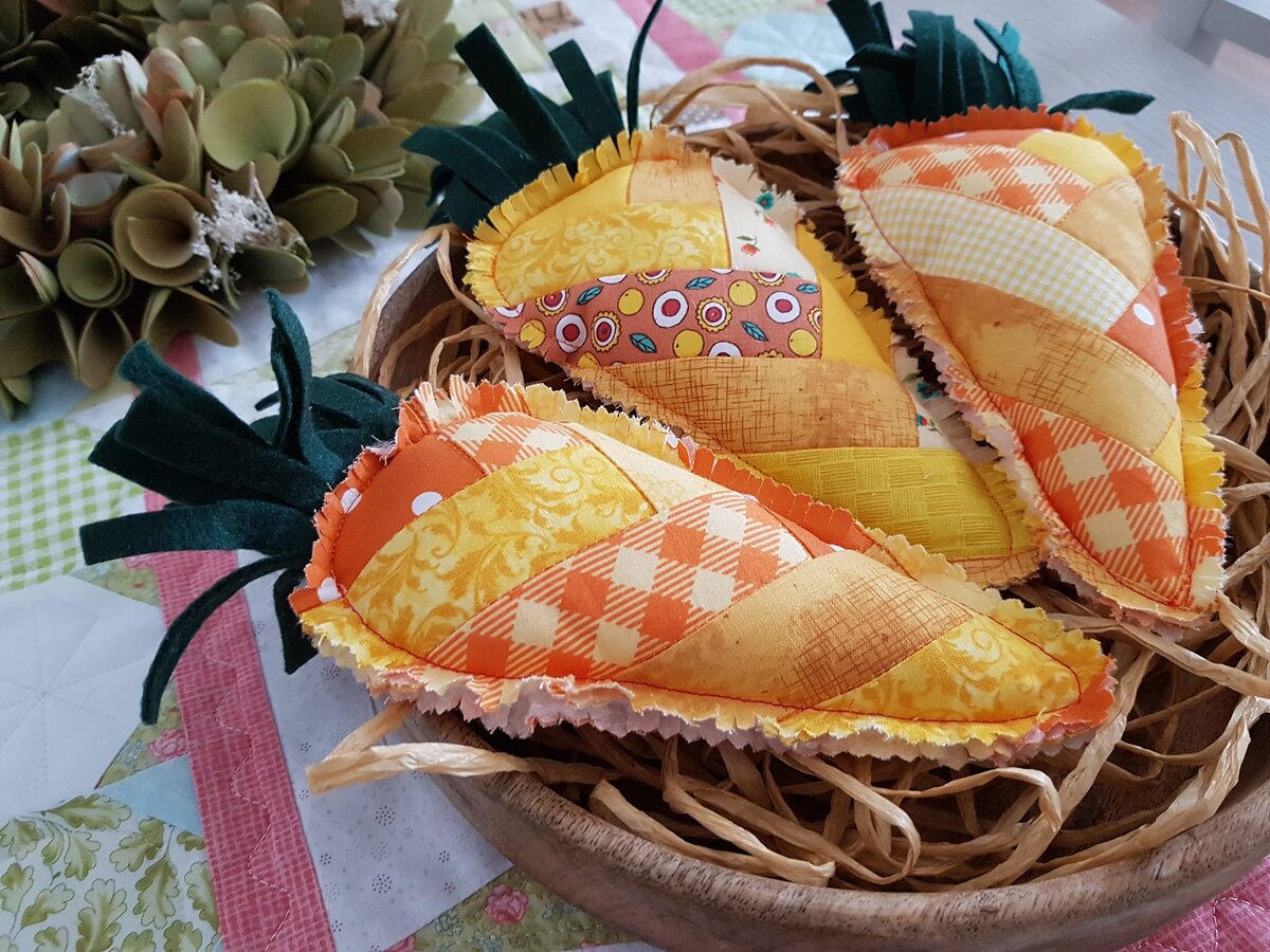 Друзья, скоро Пасха и текстильные морковки могут украсить ваш интерьер. Понравились они мне тем, что сшиты в технике пэчворк. Шаблон у вас есть, а видео, мастер-класс будет опубликован следующим.