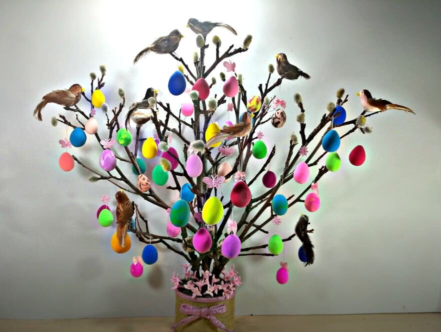 Вот вы когда заходите в дом, как понимаете, что в нем — праздник? С пасхальное дерево — рассматривали ли вы когда-нибудь этот вариант? Между тем это очень простой и нарядный пасхальный декор, который не только украсит праздничный стол, но и создаст особое настроение и атмосферу. Сделать пасхальное дерево своими руками совершенно несложно. В первую очередь вам понадобятся красивые ветки необычной формы — чем более пышными и густыми они будут, тем лучше. Не спешите идти в лес и, засучив рукава, заниматься вандализмом: весна — период обрезки деревьев, и в ближайшем парке вы наверняка найдете то, что ищете. В крайнем случае можно обратиться к друзьям и знакомым, которые живут в частном секторе — обрезая сад, они вполне могут отложить для вас несколько загадочных веточек. После этого можно пойти двумя путями: поставить веточки в воду, чтобы к Пасхе на них распустились листочки, или закрепить их в какой-нибудь подходящей емкости, которая обеспечит композиции устойчивость. Пасхальное дерево м