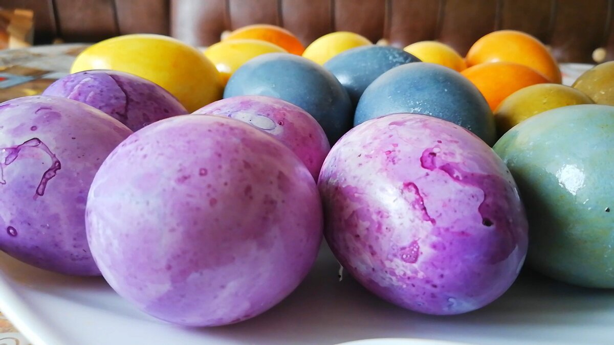 В принципе можно экспериментировать как угодно. Перемещение яиц из одной натуральной краски в другую, а так же время их выдерживания в той или другой жидкости, дают разные оттенки и цвета. Причём процесс волшебного окрашивания и изменения цвета происходит у вас на глазах. В воде они будут одного цвета, а когда начнут подсыхать окраска поменяется.