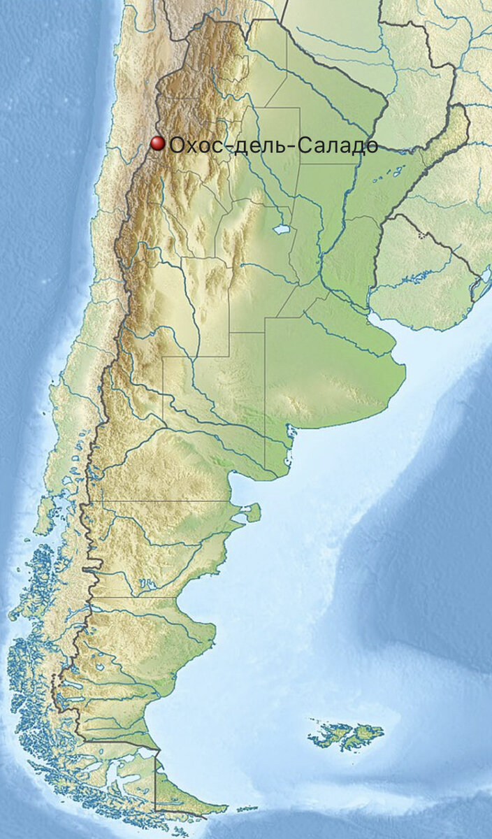 Наша планета насчитывает огромное количество вулканов, есть маленькие есть большие. Мы с вами уже разговаривали о самом высоком вулкане Евразии https://dzen.ru/a/ZA2yncu0HWliO8Pj, теперь затронем самый высокий вулкан мира, вулкан Охос-дель-Саладо. Расположен сей гигант на границе между Аргентиной и Чили. Помимо звания самого высокого вулкана ему принадлежит статус высшей точки Чили 6893 метра. К западу от вулкана и до побережья Тихого океана простирается пустыня Атакама. С испанского языка название переводится как «истоки солёной реки», то есть реки Рио-Саладо, начинающейся на вершине. Вулкан считается потухшим, так как на протяжении всей истории наблюдений за ним не было зарегистрировано ни одного извержения. Однако иногда пассивная вулканическая деятельность всё же замечалась. Так, в 1937, 1956 и 1993 году имели место незначительные выбросы серы и водяного Вулкан был покорён в 1937 году польскими альпинистами Юстином Войжнисом и Яном Щепаньским. На пути к вершине исследователями был