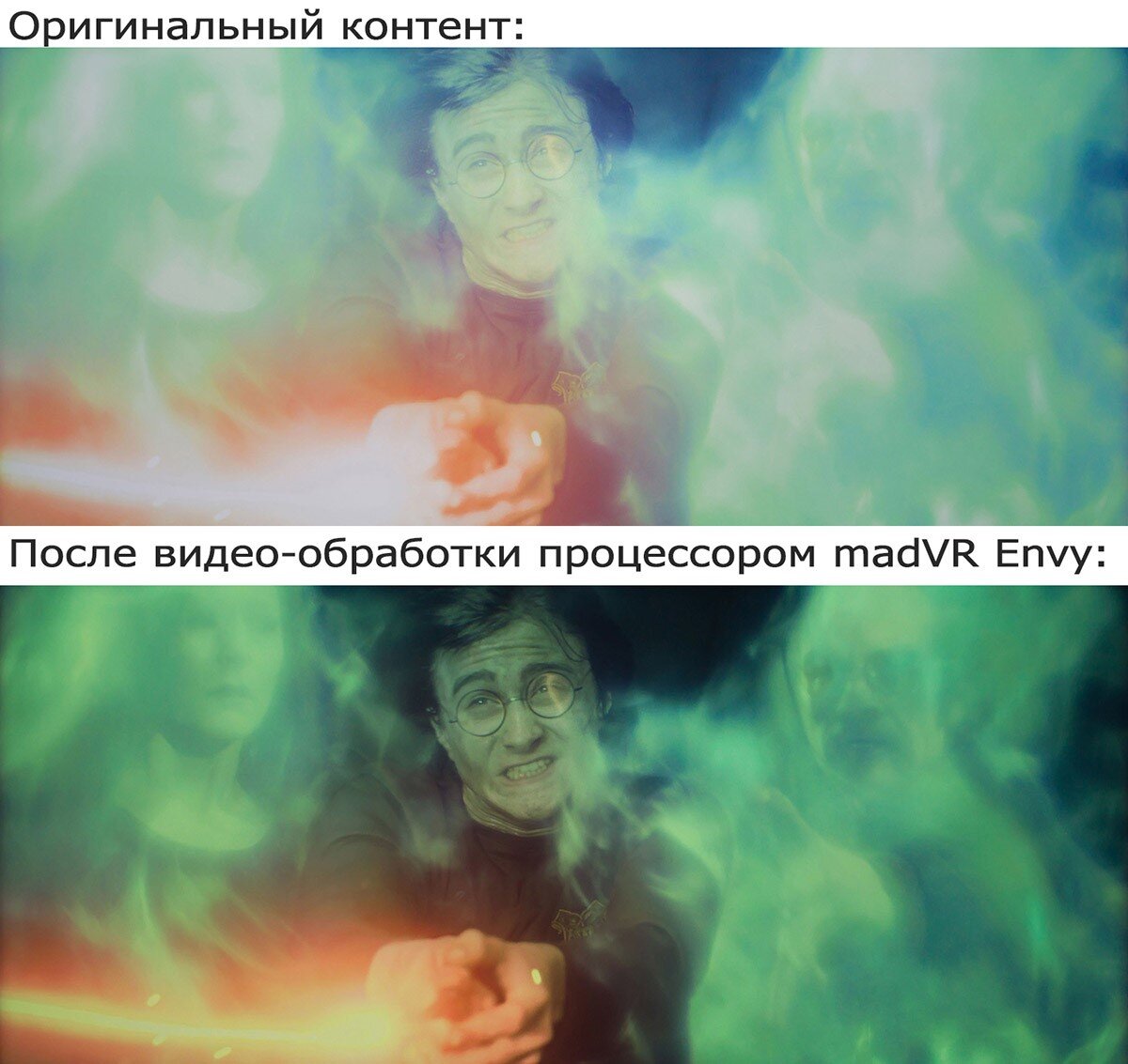 MadVR Envy кардинально улучшает все параметры изображения – вплоть до каждого пикселя контента самого высокого разрешения. При этом проекция гарантированно будет всегда занимать максимально доступную площадь экрана, а при наличии субтитров под них будет выделять не больше места, чем это действительно необходимо. О набивших оскомину чёрных полосах по краям фильма можно позабыть, благодаря практически исключающим искажения алгоритмам нелинейного растяжения, которые видео-индустрия ранее не знала.