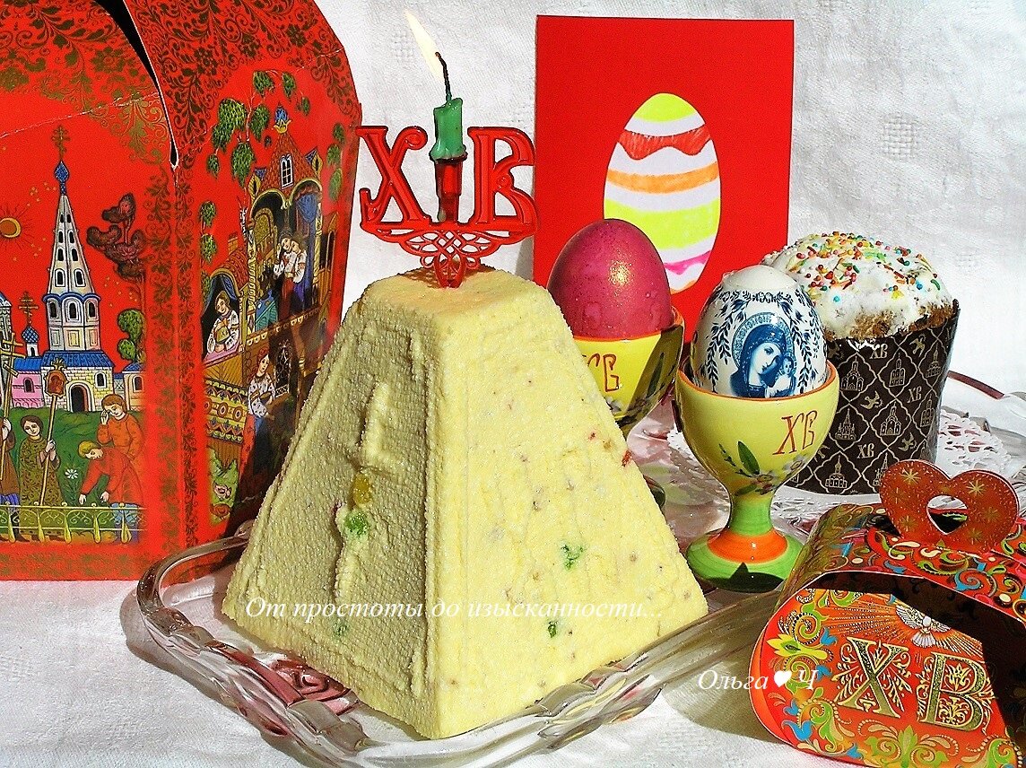 Готовимся к Пасхе! До самого главного праздника всех православных христиан осталось меньше недели и я хочу познакомить вас с одним из вкуснейших пасхальных угощений! Пасха - христианское пасхальное блюдо, состоящее из творога или сметаны с яйцами, спрессованное в виде усеченной пирамидки. По церковно-славянски она называется "млеко огустевшее". На боковых её сторонах изображается крест и буквы "ХВ", что означает" Христос Воскресе". Перед вами Царская пасха. Она может быть сырой или заварной. Мой вариант сырой, причем без использования яиц, с добавлением каймака, цукатов и кедровых орешков. Действительно, Царская пасха! Очень вкусно, попробуйте ;) ИНГРЕДИЕНТЫ: