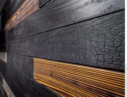 Обожженное дерево использовали еще наши предки, мы уже упоминали об этом в одной из статей. Перенимая традиции, эту старинную технику используют и сейчас, так как она придает материалу прочность, защищает от гниения, древоточцев и плесени. Но если раньше обожженное дерево использовали в основном в строительстве, преследуя практические цели, то теперь из такой древесины также делают предметы интерьера, мебель и другие изделия. Давайте поговорим обо всем этом подробнее. Что можно создать из обожженного дерева? Фундаменты Для начала можно вспомнить один из самых очевидных вариантов — обожженное дерево часто используют в качестве фундаментов для деревянных и прочих зданий. Это могут быть сваи, столбы ограждений, нижние венцы срубов, опоры для открытых террас и веранд, беседок и навесов и т.д. Обычно древесина подвергается процедуре браширования — ее очищают от не до конца сгоревших волокон абразивом или специальной щеткой. Это носит эстетическую функцию. Однако в случае с фундаментом это с