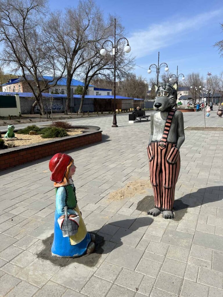 Сегодня на Сказочной Аллее балаковского Детского парка появились еще несколько персонажей всеми любимых сказок. Ближе к входной группе расположились Серый волк и Красная Шапочка, с другой стороны аллеи – Крокодил Гена, Чебурашка и старуха Шапокляк. Следующие на очереди – фрукты-сиденья для детей: яблоко, груша и лимон. Параллельно ведутся работы по подкраске уже установленных ранее в парке фигур. Сегодня автор идеи создания сказочного городка в Детском парке Елена Малькова приводит в порядок черепаху Тортиллу, верхом на которой сидит задорный Буратино. Новые фигуры уже вызывают искренний детский восторг – маленькие жители города с удовольствием обнимаются и фотографируются с любимыми сказочными персонажами. Напомним, на сегодня в Детском парке уже установлены фигуры Буратино на черепахе и озеро с лягушатами, Дуремара, Карабаса-Барабаса, Кота в сапогах, Колобка, Вороны и Лисицы, Винни-Пуха и Пятачка, Золотой рыбки и старика со старухой. Сотрудники парка просят посетителей уважительно от