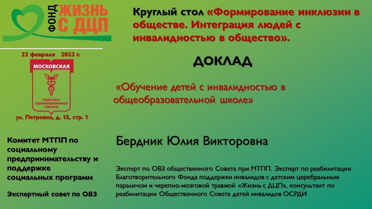 Когда приходит время для ребенка с инвалидностью и ОВЗ поступления в общеобразовательные учреждения, будь то сад, или школа, возникает достаточно много проблем. Вроде бы понятен алгоритм, ребенок проходит мед комиссию, потом ПМПК, получает рекомендации ПМПК, в которых написано, по какой программе ребенок должен учиться, какая дополнительная коррекционная помощь ему нужна, нужен ли ему ассистент или тьютор, какие ему создать условия обучения, как прошло оценивание. На деле получается, что школа не готова к такому ребенку, и не может должным образом обеспечить указанное в решении ПМПК. Об этом я выступала как эксперт Экспертного Совета 22 февраля 2023 года в большом зале МТТП на круглом столе «Формирование инклюзии в обществе. Интеграция людей с инвалидностью в общество», организованном Комитетом МТПП по социальному предпринимательству и поддержке социальных программ совместно с Экспертным советом по ОВЗ при Комитете. #дцп #детидцп #овз #детисовз #пмпк #детиинвалиды #школа