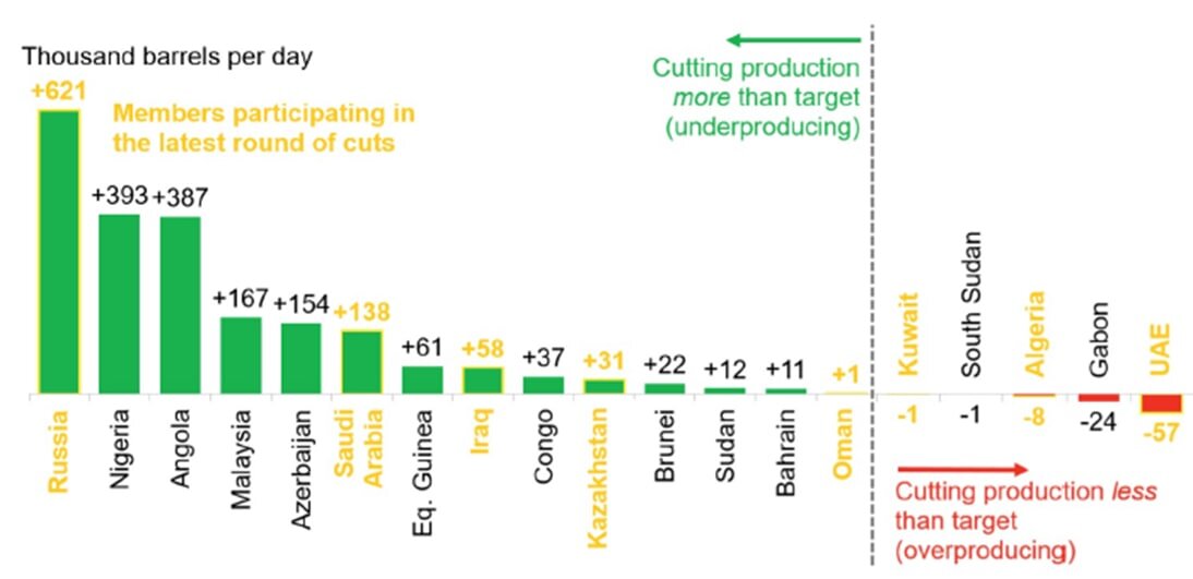 Иными словами, к моменту очередного «сокращения» добычи совокупная добыча альянса и так уже была заметно ниже квот.