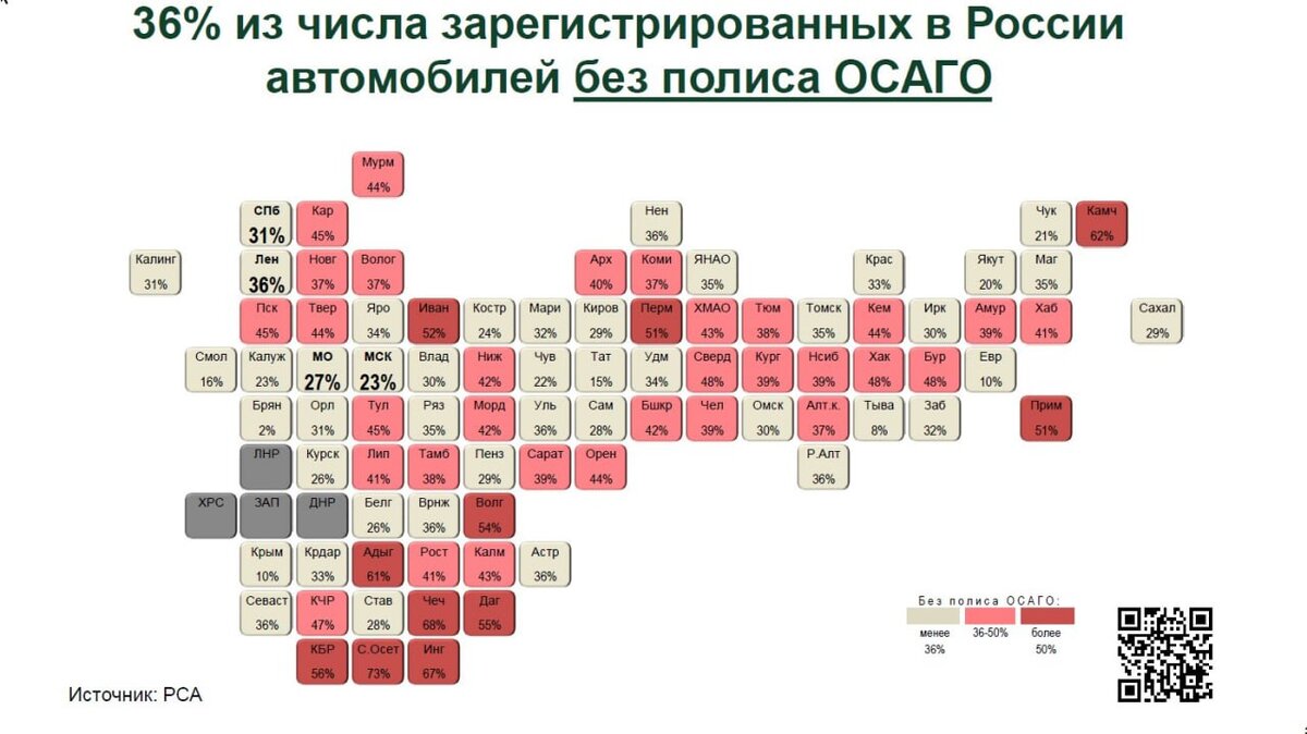 Это данные Российского союза автостраховщиков по количеству автомобилей без полиса ОСАГО по регионам.