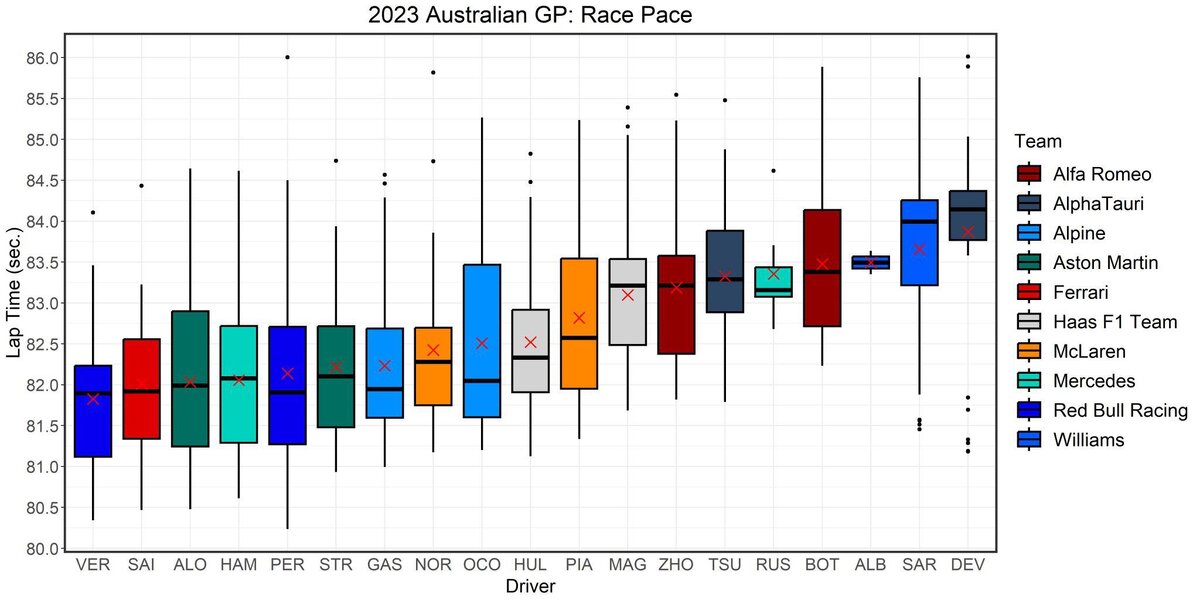 На самом деле второй по среднему темпу машиной в Австралии был не «Мерседес». Без учета «Ред Булл» стабильнее и «ближе» всех круги гоночного отрезка укладывал Карлос Сайнс на «Феррари».