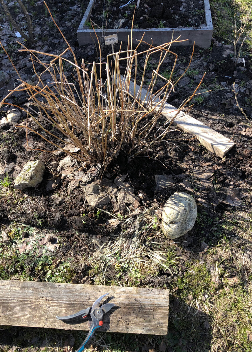 Срезаем все сломанные, засохшие и идущие внутрь куста ветки