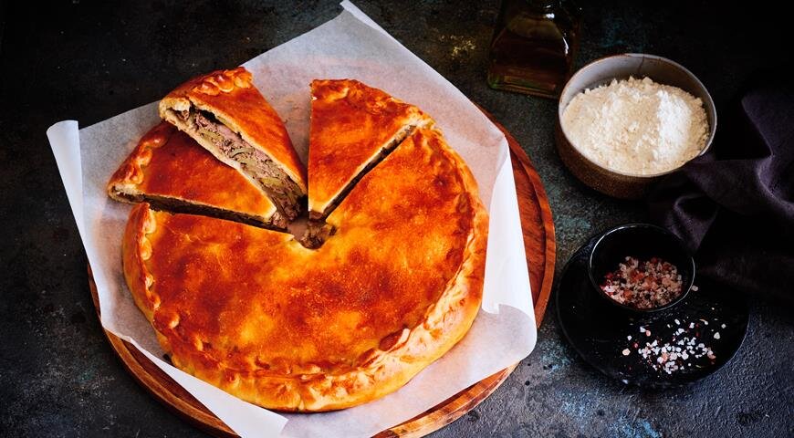 Во время выпекания пирог необходимо периодически вращать, чтобы корочка получилась равномерно румяной.