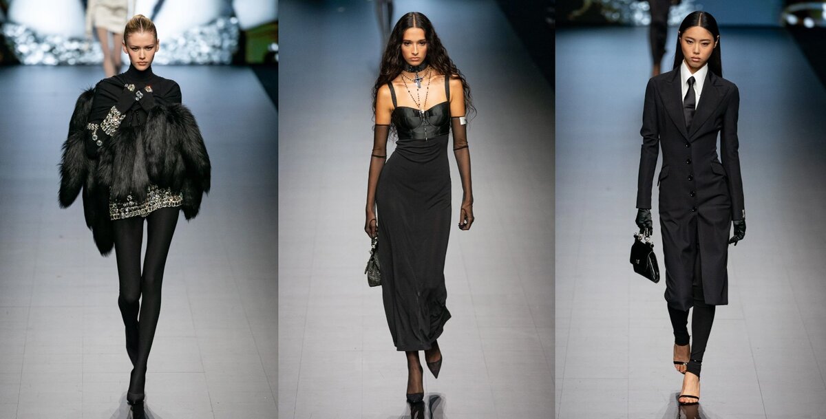 Черный цвет всегда был визитной карточкой Dolce & Gabbana. Он тесно связан с традициями Италии, а также с классическими представлениями об элегантности, изысканности, хорошем вкусе. Сицилийские женщины подолгу носят черную одежду в знак траура. А благодаря жанру гангстерских фильмов, который зачастую отсылает к Италии или итальянским диаспорам в других странах, сцены роскошных похорон в больших итальянских семьях и сообществах приобрели культовый статус. Черно-белое кино и, в первую очередь, фильмы Федерико Феллини тоже способствовали формированию представлений о стиле итальянских женщин и значимости в нем черного цвета. Ему отведена центральная роль и в весенне-летней коллекции Dolce & Gabbana. Создатели линейки тоже благоволят монохрому: модельеры сами постоянно носят черное, да и Ким Кардашьян нередко отдает ему предпочтение. В нынешнем сезоне этот стабильно модный цвет особенно актуален благодаря популярности стиля «готкор». В коллекции с черным соседствуют белый, серый, нюдовый и серебряный, а отдельными всполохами на подиуме появлялись ярко-красные наряды и леопардовый принт.