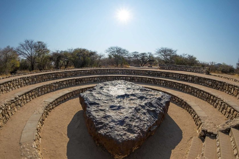 Каждый день на землю с небес падает около 17 метеоритов. Но особенный из них упал недалеко от города Хрутфонтейн в Намибии — это самый крупный в мире неповрежденный «космический камень» под названием метеорит Гоба. Его имя связано с фермой, где его обнаружили. Тысячи лет назад, этот метеорит упал и разбился. Из-за его огромной массы местные жители решили оставить его на месте приземления. Предыстория В 1920 году землевладелец Якоб Херманус Бритс работал на поле, когда услышал звенящий звук. Он нашел большую черную скалу под землей. Рабочие подняли остальную часть метеорита после его раскопки, и после проведения научных исследований выяснилось, что это не обычный камень, а упавший с неба метеорит. Из-за величины метеорита, люди не смогли его переместить, поэтому решили оставить его здесь. Через годы вокруг места падения метеорита был создан национальный парк, в котором также построили музей и амфитеатр для посетителей. Интересно, что метеорит Гоба назван также «подарком», потому что име