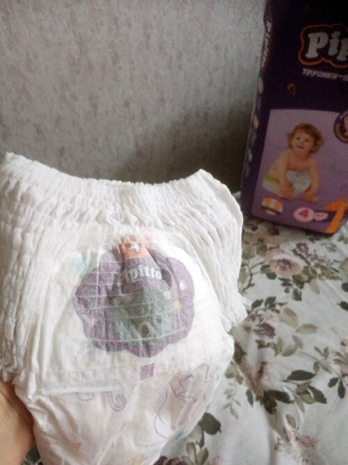Рассказать о наших новых подгузниках я решилась только сейчас, когда купила и открыла вторую упаковку Pipitto. Первая у нас была меньшей по количеству, на 22 штуки. Пробников не нашла, поэтому взяла ту пачку, которая меньше. Мало ли что. Вдруг не подойдут. У нас такое случалось Эти узбекские трусики точно зашли. Они недорогие, выдержанные, безопасные. Сидят удобно, передвигаться ребенку не мешают. Упакованы они в пластиковый пакет с ручками. Пачка внешне симпатичная, выполнена в оттенках сиреневого цвета. Материал плотный, ручки достаточно длинные, чтобы было удобно нести пакет. Открывается он сверху путем разрыва намеченной линии. Нормально ее разорвать у меня, правда, не получилось. Закосила слегка. Но это на качестве самих трусиков никак не отразилось Сами трусики высокие. Сидят идеально на ребенке весом 9,4 кг. А вообще размер №4 рассчитан на вес 7-18 килограммов Сшиты Пипитто с душой. Это сразу видно по аккуратным швам, отсутствию торчащих ниток, по качеству ткани и т.п. Ткань на