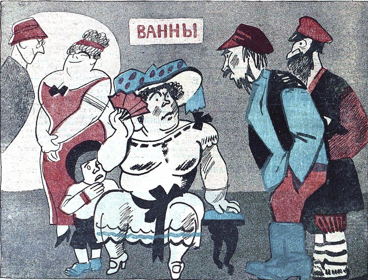 На курортах по-прежнему много нэпманов. (Тоже из газет). - Ты что же, милая, фабричная будешь? - Заводская. У меня свой завод свечной. Тему продолжил Иван Малютин с карикатур