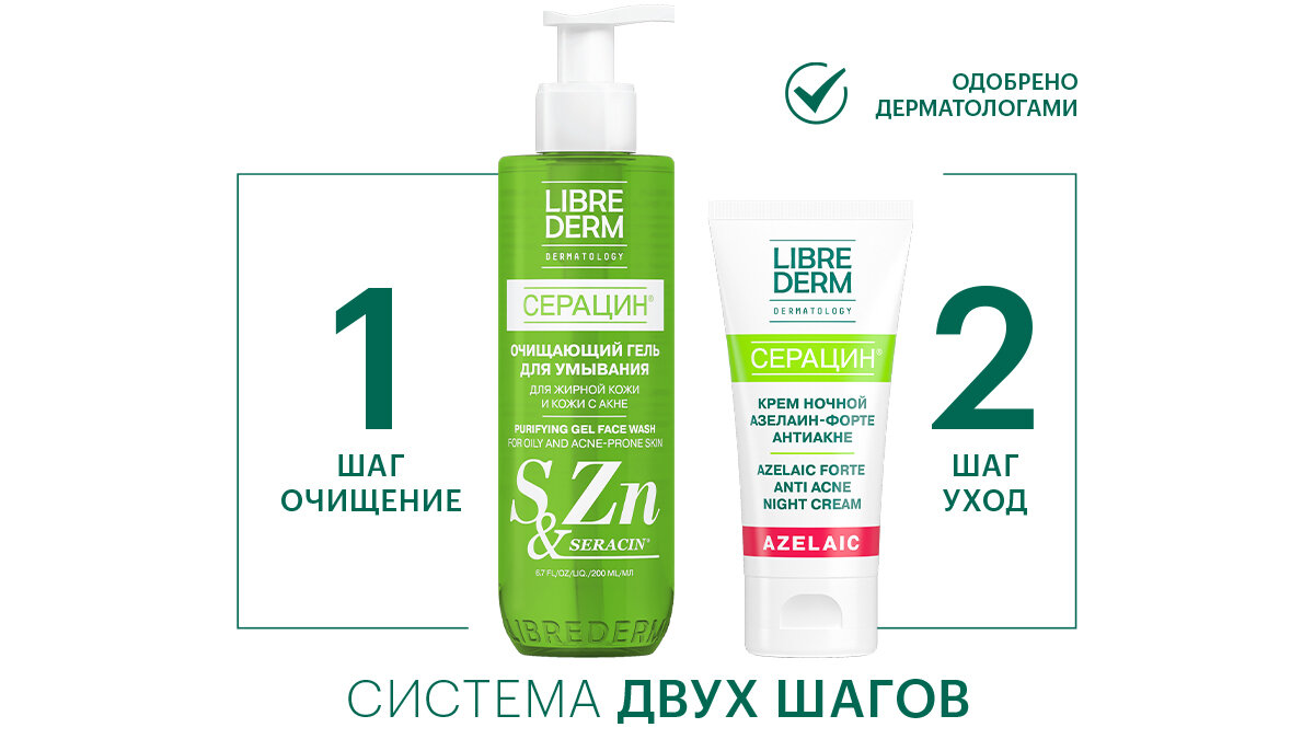 Средства Seracin LIBREDERM рекомендованы дерматологами и могут быть использованы в комплексной терапии акне, а также в качестве поддерживающей терапии.