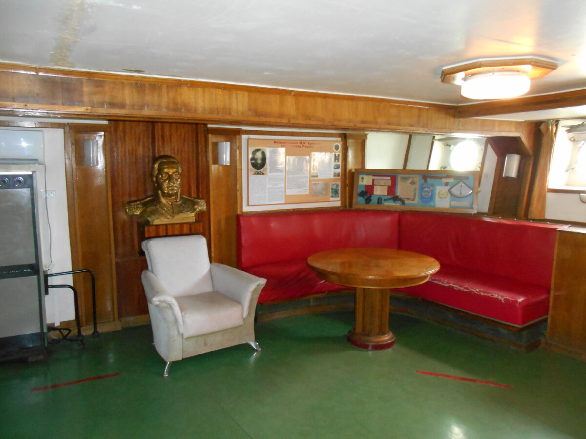 В этой части экскурсии мы узнали о морском вооружении корабля, как устроена служба и быт на крейсере, и стоимость сувениров (коммерция, как же без неё). Вообще очень познавательная прогулка по палубе и в трюме военного корабля. Мы наглядно увидели каюту матросов. Узнали, что в ней не только спят , но и кушают. Посидели в кают-компании на месте капитана. Посмотрели медицинский кабинет и кухню. Без излишеств и прикрас узнали о тяжёлой службе на флоте! Тоже советуем посетить.