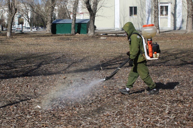 Курганцам стоит воздержаться от прогулок в парках. Пятого апреля специалисты провели акарицидную обработку в Городском саду. Поэтому сутки горожанам и их домашним питомцам нужно отказаться от прогулок по траве. Обработают 82 общественные территории площадью чуть менее тридцати гектаров. Как сообщил директор департамента развития городского хозяйства Андрей Плешков, планируется обработать от клещей в сквере Высоцкого, барона Розена, в Парке Победы и Центральном Парке Культуры и Отдыха. Клещи проявляют активность, как только земля прогревается до пяти градусов. Поэтому обрабатывать общественные места начинают обычно в начале апреля. В этом сезоне уже зарегистрированы случаи, когда курганцев кусали клещи. Бригада из трех человек в защитных костюмах и масках расчищают землю от мусора и листьев, а потом распыляют препараты против клещей. Тот, который используют курганские специалисты, не опасен для людей и животных. Затем специалисты белой тканью проверили наличие клещей на траве. — Повторн