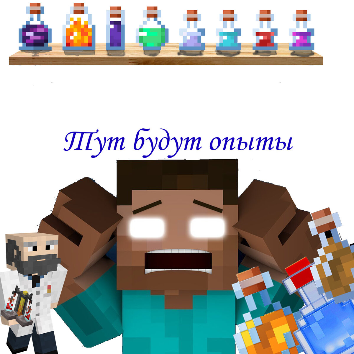Привет, путник! И нет, меня не утащил Херобрин, я жив и пишу статью (причина моего долгого отсутствия неизвестна даже мне). Сегодня нас ждет: побег из бункера, новый дом, а также опыты над нашим белоглазым другом, чтобы мы смогли полностью понять его природу. Присаживайтесь поудобнее, не смею больше затягивать. Погнали!!! 1 часть | 2 часть | 3 часть Начало экспериментов После возвращения из шахты с пачкой алмазов из прошлой части, я встал на пост дежурного, пока Нефи занимался огородом. Херобрин мрачно смотрел на меня, а я на него через выдолбленную бойницу в нашей крепости. Когда же наступило утро, я решил прогуляться по своим владениям и случайно поймал взгляд мистического существа. Тут-то и пошел наш первый опыт. Из пройденных исследований мы получили это: У Херобрина есть 3 стадии и 2 различных вида проявления: После моих гляделок с белоглазым, нас тут же решили зарейдить разбойники. Это было легко, ведь они не смогли пробраться к нам из-за построенной стены. Основной задачей б