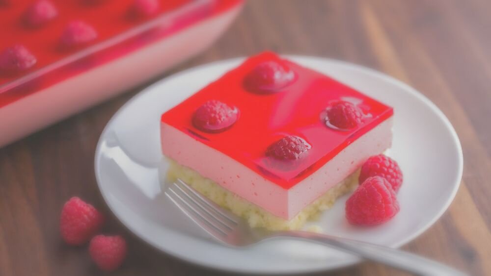 Устойчивая пена – это когда на венчике миксера гоголь-моголь не стекает, а держится. Добавить ванильный сахар и муку, просеивая через сито. После того, как мука соединится со взбитыми яйцами, выльем раствор на противень, предварительно застеленный смазанной маслом пищевой бумагой, разровняем лопаточкой поверхность теста. Выпечь бисквит при температуре 200 градусов С. В горячем виде нужно свернуть рулеты вместе с бумагой. Сворачивать нужно с противоположных сторон навстречу друг другу, чтобы получились 2 одинаковых по толщине куска. После остывания, аккуратно снимем бумагу, можно использовать нож, отделяя бисквит от бумаги. Как только вся бумага будет снята, намажем рулеты джемом или вареньем. Не раскручивайте рулет сильно, чтобы он не лопнул. Нарежем на одинаковые кусочки размером по 3-4 см бисквитные рулетики и выложим в миску, дно и стенки которой закроем пищевой пленкой или фольгой. На первый слой выложим остывшее желе. После охлаждения уложим второй слой и вновь поставим в холодиль
