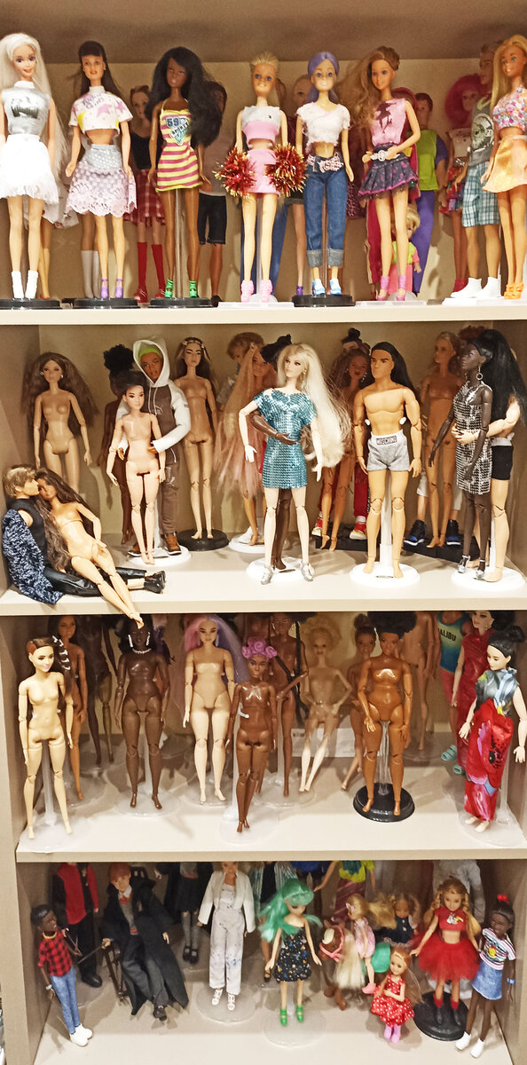 Я не раз говорила о кукольном коварстве - что они по одному проникают в дом, а затем начинают... размножаться???!!! Не знаю, что за магия, но кукол в моем доме становится все больше и больше. А ведь в кукольном хобби я еще меньше года. Хотите посмотреть как расположились куклы на моих полках? Да, пожалуйста) А вот сколько их было сравнительно недавно. В той же статье есть еще ссылка на другую статью, где видно сколько кукол было в самом начале моего коллекционирования. Рассмотрим полки поближе. Эта почетная полка со старенькими куклами, им не менее 20 лет, а некоторым намного больше. И, конечно, в центре полки моя первая барбиобразная кукла детства - Тотси. На второй полке расположились кукольные парочки и несколько кукол одиночек. Кстати, как вы думаете, почему мои куклы голые? Есть предположения?) Здесь только куклы одиночки. И как вы видите, всего один парень, остальные девушки. В общем, мальчиков у меня полнейший недобор) Следующая полка отдана куклодеткам и кукольным подросткам, а