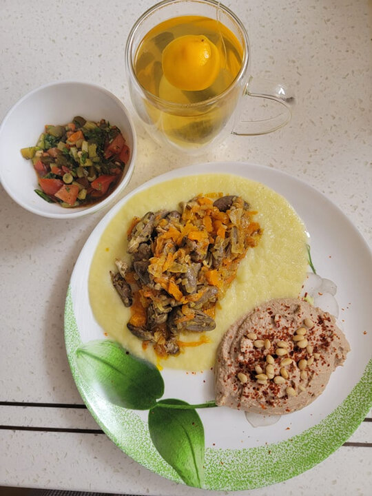 Ужин. Куриные сердечки, тушёные с луком и болгарским перцем с пюре из цветной капусты. И хумус. Как я его готовлю: Горох (200 грамм) замочить, желательно на ночь, сварить до мягкости. Стакан отвара оставить. Я очищаю оболочку, она легко снимается. В чашу блендера всыпать сваренный горох, 3 ст. ложки тахины. Если нет пасты, можно кунжут поджарить на сковороде и блендером перебить в однородную массу. З ст. ложки лимонного сока, 3 ст. ложки оливкового масла, 1/2 ч. ложки перемолотого кумина. Соль, перец по вкусу. Сначала влейте полстакана отвара, и все перебейте в блендере. Если получится густой, добавьте остальной отвар и снова смешайте в блендере. Это классический рецепт. А дальше - на вашу фантазию: чеснок, или красный перец, или грецкий орех и др. В данном случае я добавила горсть грецкого ореха. Ну, или если на стол, можно украсить как на фото. Фото мои. + 3 фото Больше общения и рецептов - в группе "Рецепты для диабетиков" в ВКонтакте! Рецепт на странице