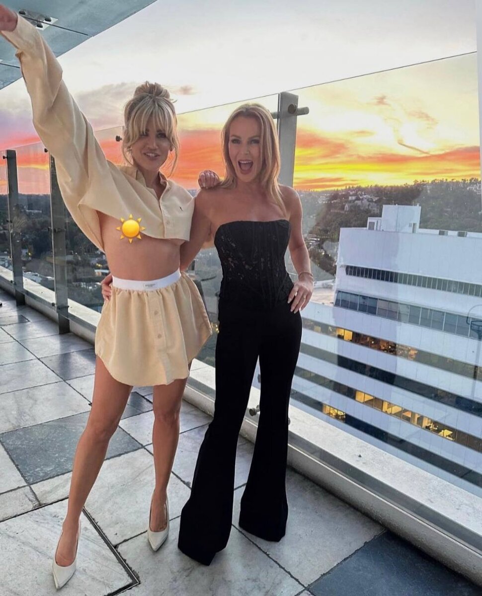 Эшли опубликовала кадр в социальных сетях. На снимке певица и телеведущая позируют на балконе на фоне заката. Робертс выбрала бежевый укороченный костюм из шорт и кроп-топа. Волосы певица собрала в высокий пучок. От аксессуаров артистка отказалась, в качестве обуви выбрала белыми туфлями. Аманда на снимке запечатлена в черном топе без бретелек и расклешенных брюках. Волосы у Холден распущены. Образ дополняют браслет и кольца. На фото девушки обнимаются. На снимке Эшли подняла руку и случайно оголила грудь. По этой причине артистка наложила на бюст смайлик солнца. "Пейзаж", - подписала снимок Эшли. Новая публикация певицы собрала более 17 тысяч лайков.